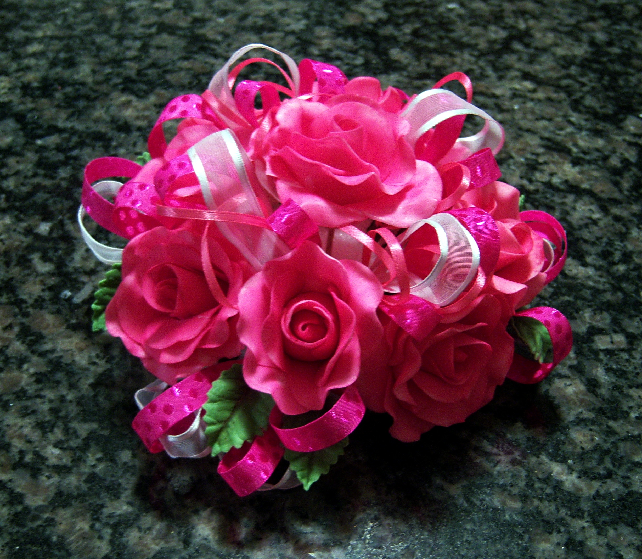 Hot pink roses with ribbon White morning glories Calla Lilies, Roses, Hydrangea, Sweet Peas & Jasmine